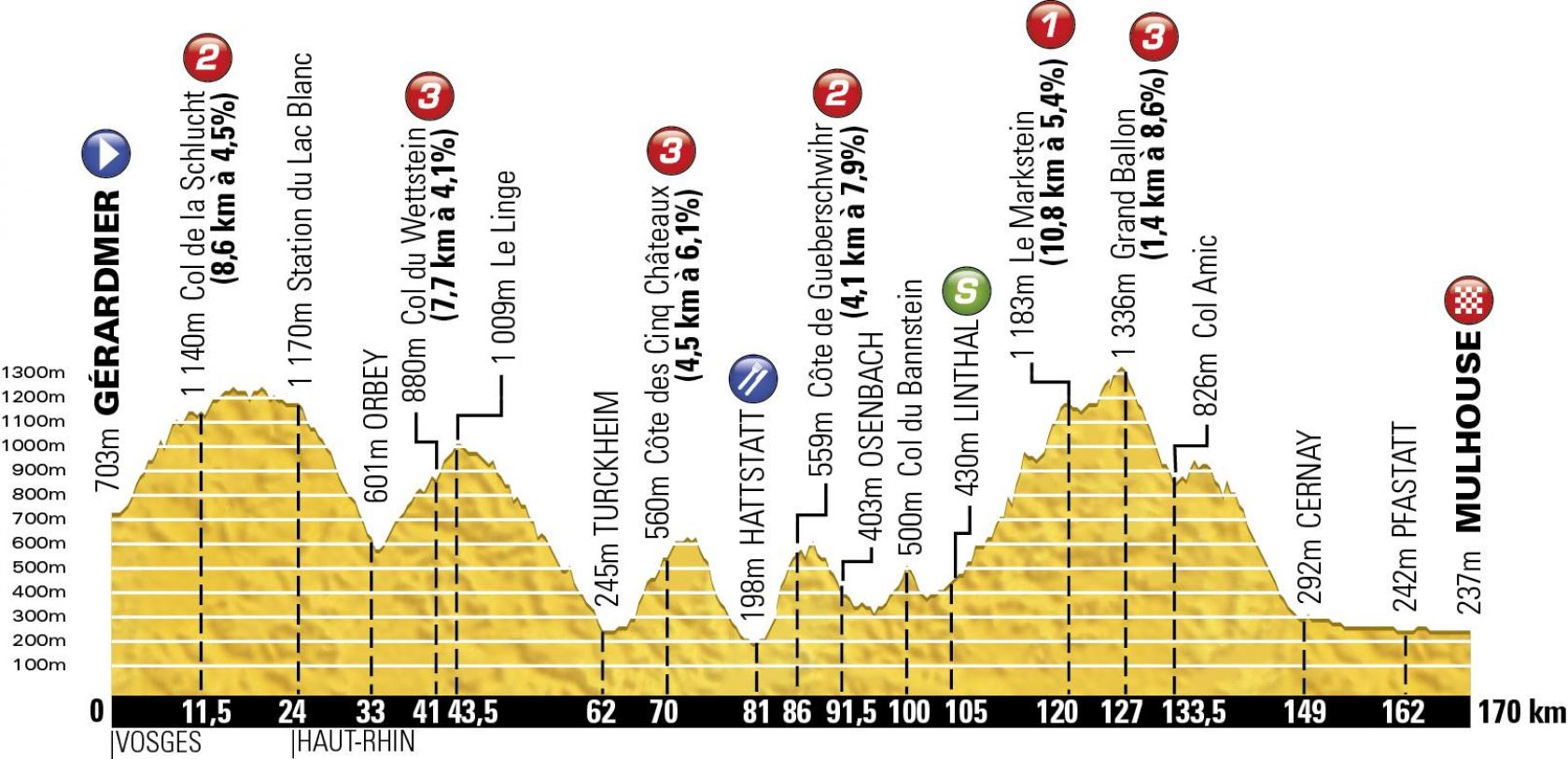 Il est en revanche probable que les acteurs principaux du classement général reportent à demain leurs grandes manœuvres : les quarante kilomètres de descente puis de plat qui séparent le sommet du Grand Ballon de l'arrivée à Mulhouse rendent aléatoire la portée d'éventuelles attaques franches dans les ascensions.