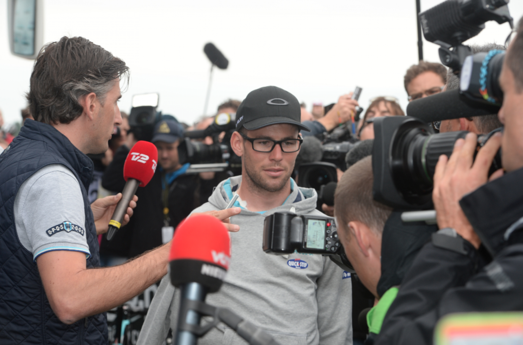 Mark Cavendish a été précipité au tapis dans l'emballage de la première étape à Harrogate après une empoignade avec le champion d'Australie Simon Gerrans. Ce dernier, contusionné, prend quand même le départ, mais avec des chances amenuisées sur un parcours pourtant taillé pour ses qualités de lauréat de Liège-Bastogne-Liège : « Je vais essayer, mais cela va être très difficile après ma chute », a expliqué Gerrans, confirmant que Cavendish lui avait présenté ses excuses.