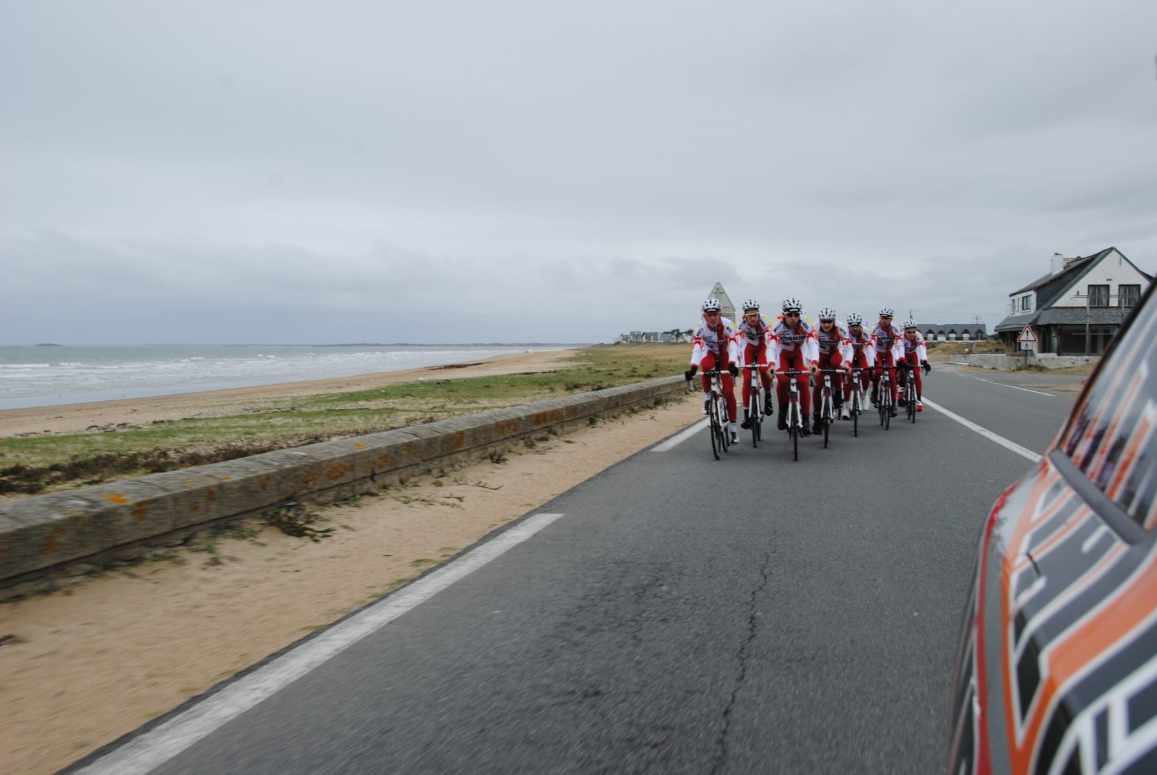 Le dimanche l'ensemble du groupe a effectué des exercices de "bordure" sur le bord de mer, le staff ayant pû également se roder avec des postes de ravitaillement et des dépannages.