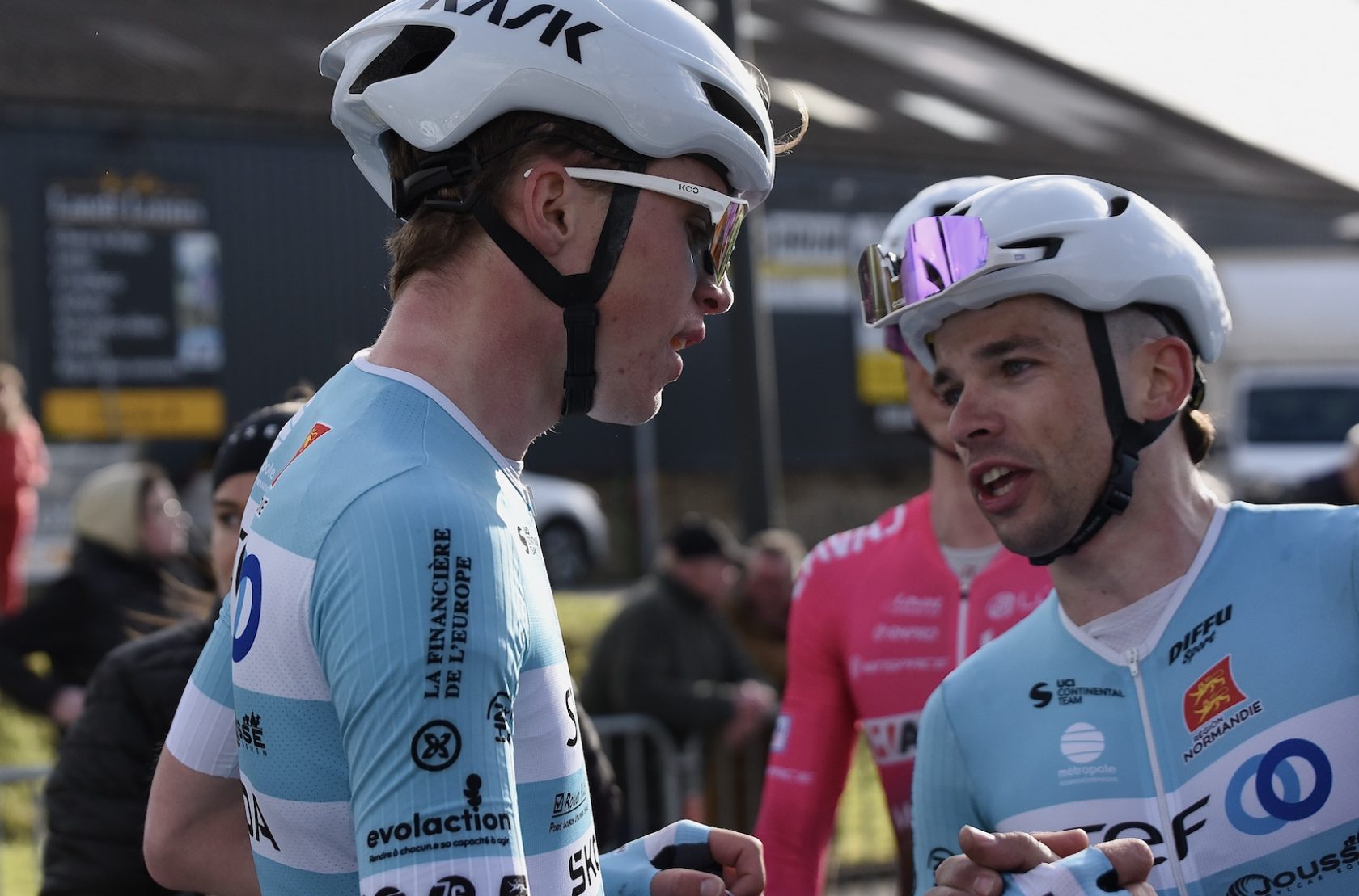 Louka Lesueur est un spécialiste du contre la montre. Pendant toute la course, il a joué du chronomètre en compagnie de Théo Josso, les deux fuyards ne dépassant jamais les 30 secondes et restant toujours à portée de fusil du peloton. Le premier qui opéra la jonction fut Florian Gaillard du Team Mayenne-Monbana-Rapido. Auteur d’un effort similaire, Edgar Laurensot (Moyon Percy Manche Normandie) intégrait à son tour l’échappée.