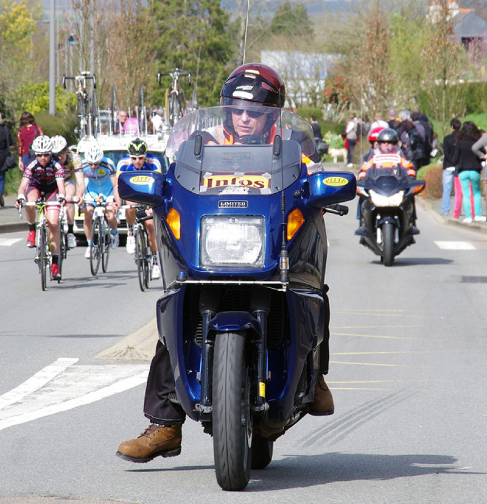 Depuis le 1er mars, l’ABEC 56 s’est déployé sur les épreuves de la Melrandaise, La Route Bretonne, Manche Atlantique, Le Circuit du Morbihan et plus récemment les Boucles Guégonnaises. Sur chaque manifestation, plusieurs rôles sont attribués avec une majorité de motards mobilisés à la sécurité, complété la plupart du temps par un moto info, une ou deux motos commissaires, une moto ardoisier, une voire plusieurs motos presse, ceci suivant les besoins des organisateurs. 30 motards ont été déployés sur les courses lignes (cadet, 3ème cat, élite) du dernier Redon-Redon.