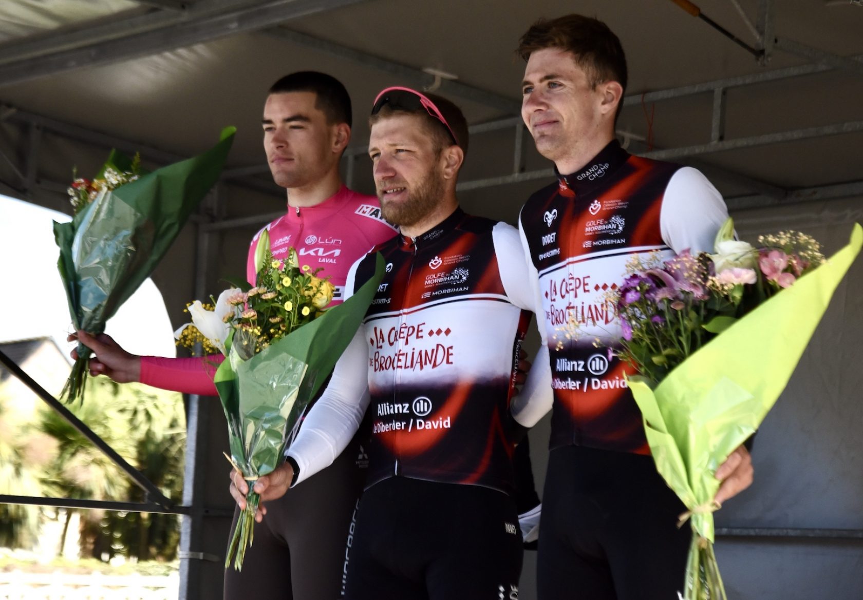 A l’entrée sur le circuit final, le peloton souffrant d’une apathie soudaine, accumulait quasiment trois minutes de retard. Erwan Besnier devenait dès lors le leader virtuel. « La Crêpe de Brocéliande voulait gagner l’étape. Ils étaient deux et ils ont roulé très fort. C’est en partie grâce à eux que nous avons creusé aussi vite. Forcément je n’ai pas passé de relais, car j’avais le premier et le deuxième du général derrière. J’ai vu que ça irait au bout. J’ai roulé très vite dans le dernier kilomètre car le peloton rentrait derrière et il fallait assurer le classement général. C’est mon premier succès sur une course à étape d’un week-end », explique Erwan Besnier.