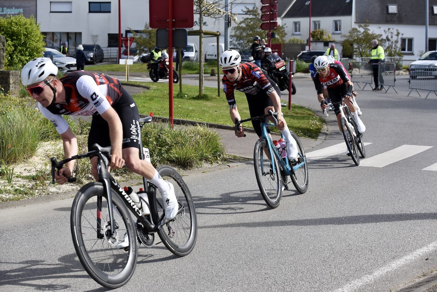 La dernière étape s’est décantée sur le tard, à 20 km du circuit final. Ilan Larmet portait une attaque, il était rejoint par Alan Moulin (Morlaix Cyclisme Performance), par Thibault D’Hervez (Briec), par Ludovic Morice (VCP Loudéac) et par Emmanuel Morin donc. Bien évidemment les Mayennais devaient mettre un des leurs dans cette échappée afin de contrôler la course et ce fut Erwan Besnier qui s’y colla.