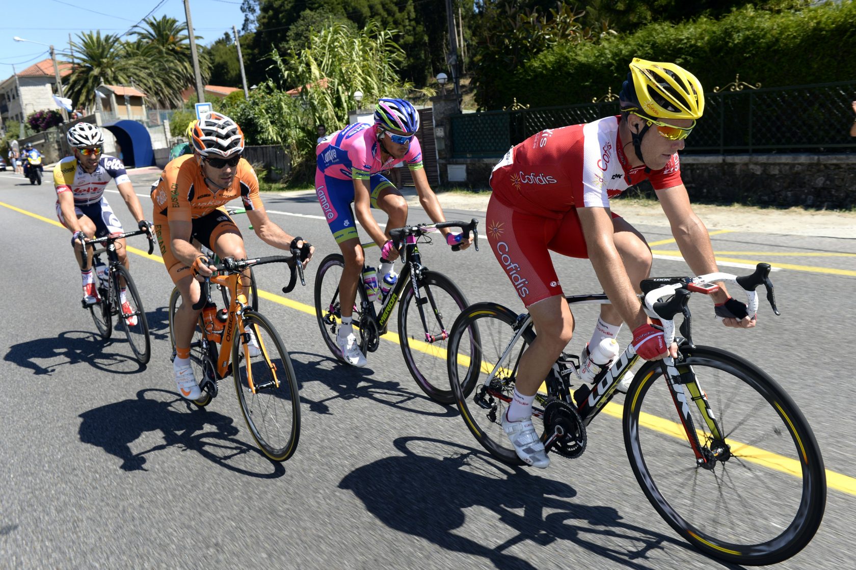 Deux chutes perturbent le peloton. La première à 63 km de l’arrivée impliquant notamment Sergio Henao (Team Sky) qui reprendra sa place dans le peloton. La deuxième à 37 km de l’arrivée peu après la fin de l’échappée et à l’approche de l’Ile d’Arousa où le vent coupe le peloton en deux parties, une quarantaine de coureurs, dont Mikel Nieve et Domenico Pozzovivo, étant piégés. Les équipes Ag2R-La Mondiale, Euskaltel et Omega Pharma-Quick Step roulent en poursuite. La jonction s’opère à une vingtaine de kilomètres de l’arrivée.