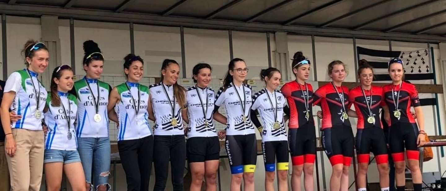 Le 11/07/2021Bretagne CLM par équipe des dames: les Finistériennes et les Morbihanaises championnesFacile victoire de l'équipe du Comité Départemental du Finistère ce dimanche à La Chapelle-Janson ! Les cadettes du 29 devancent le CD22 de 1'08. A ... Suite