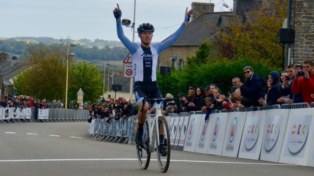 Paul Seixas (VC Villefranche Beaujolais) remporte la manche de coupe de France de CX organisée à Quelneuc (56). Le premeier breton est Maxime Vézie